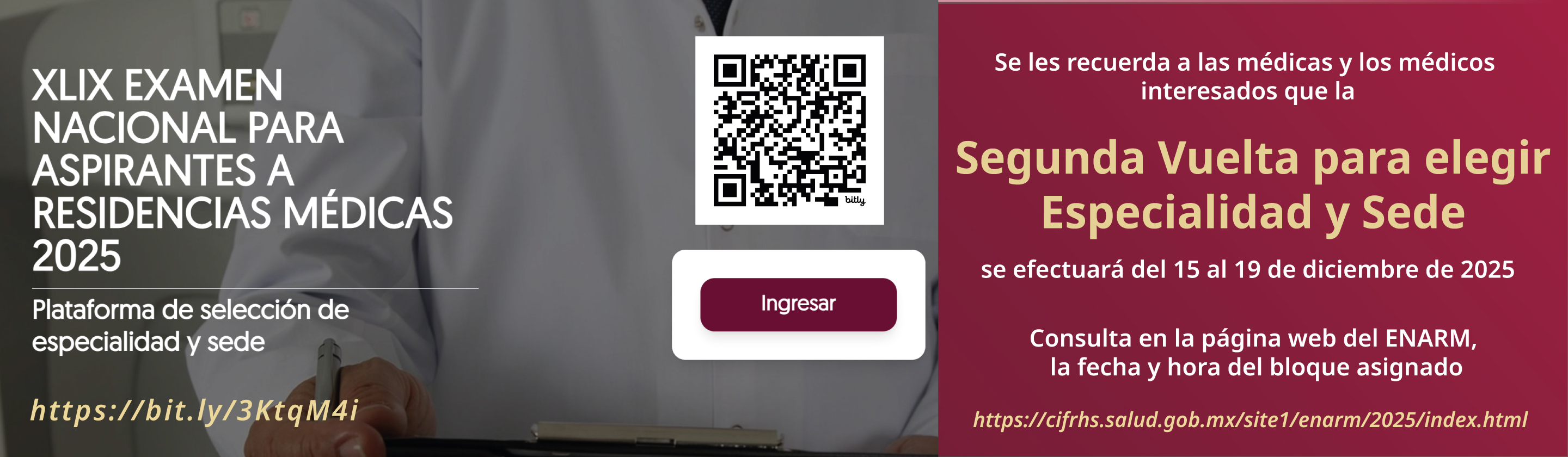 ofertas de plazas, la venta de examen o constancias de selección, incluso sin realizar el Examen Nacional para Aspirantes a Residencias Médicas (ENARM).